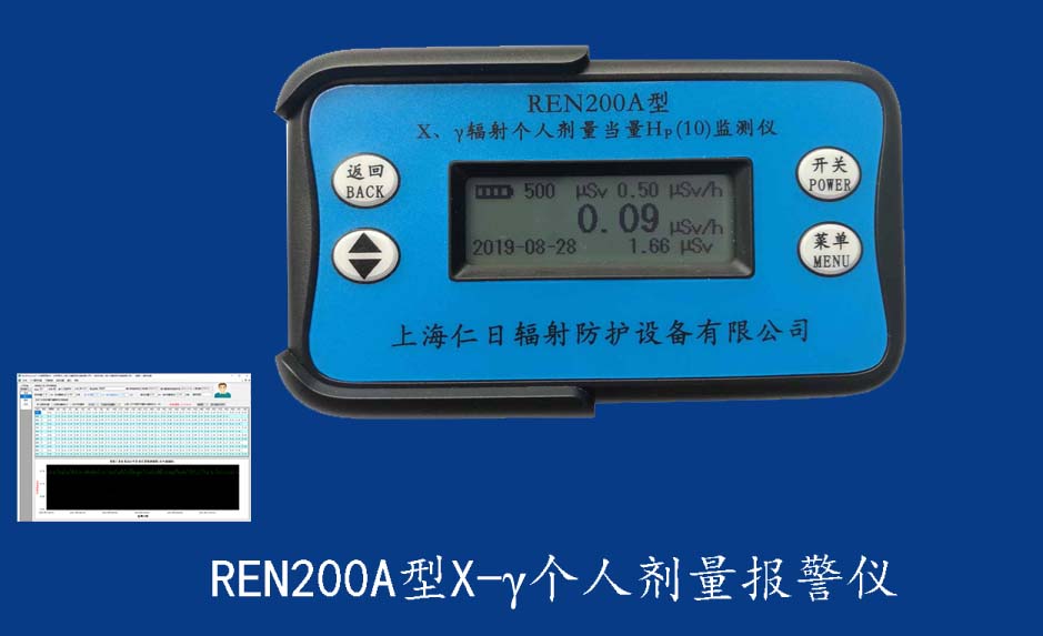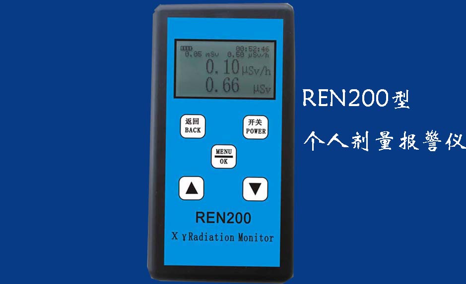 REN200A型X、γ輻射個(gè)人劑量當(dāng)量HP(10)監(jiān)測(cè)儀(簡(jiǎn)稱:個(gè)人劑量報(bào)警儀)內(nèi)置高靈敏度蓋格計(jì)數(shù)管為探測(cè)器,主要用來(lái)監(jiān)測(cè)各種放射性工作場(chǎng)所的X、γ以及硬β射線的輻射,具有響應(yīng)快,測(cè)量范圍寬的特點(diǎn)。能顯示工作場(chǎng)所的劑量當(dāng)量率和累積劑量,更換電池時(shí),日期及累積數(shù)據(jù)能永久保存。可選配RenRiPersonal個(gè)人劑量管理軟件,該軟件可存儲(chǔ)多個(gè)人的歷史數(shù)據(jù),能記錄日累積、月累積、年累積、輻照時(shí)長(zhǎng)、計(jì)算平均劑量率、扣除或不扣除本底輻射,且以文字和圖譜的方式展現(xiàn)數(shù)據(jù)。廣泛應(yīng)用于核電站、加速器、鋼鐵、化工、同位素應(yīng)用、工業(yè)X、γ無(wú)損探傷、放射醫(yī)療、鈷源治療、γ輻照、放射性實(shí)驗(yàn)室、核設(shè)施周?chē)h(huán)境監(jiān)測(cè)等領(lǐng)域中的工作人員進(jìn)行個(gè)人安全防護(hù)監(jiān)測(cè)及放射性提示。&nb